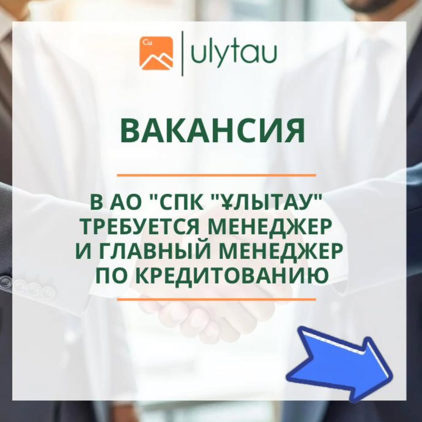📣📣📣Внимание, вакансия! В АО » СПК » ҰЛЫТАУ» требуется менеджер и главный менеджер по кредитованию. Обращатся по телефону: 87473673669
