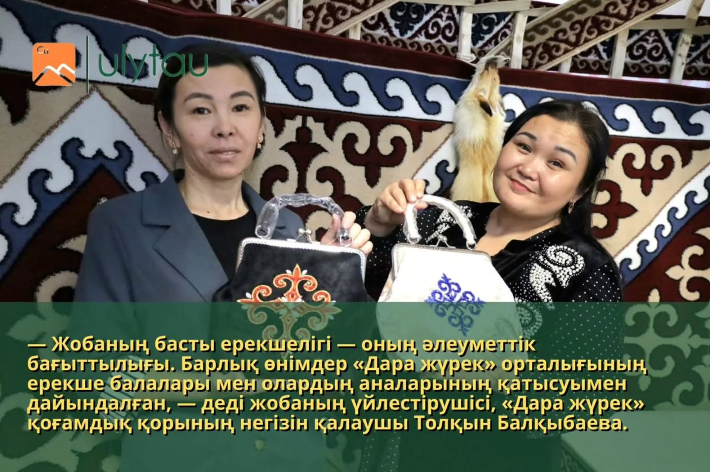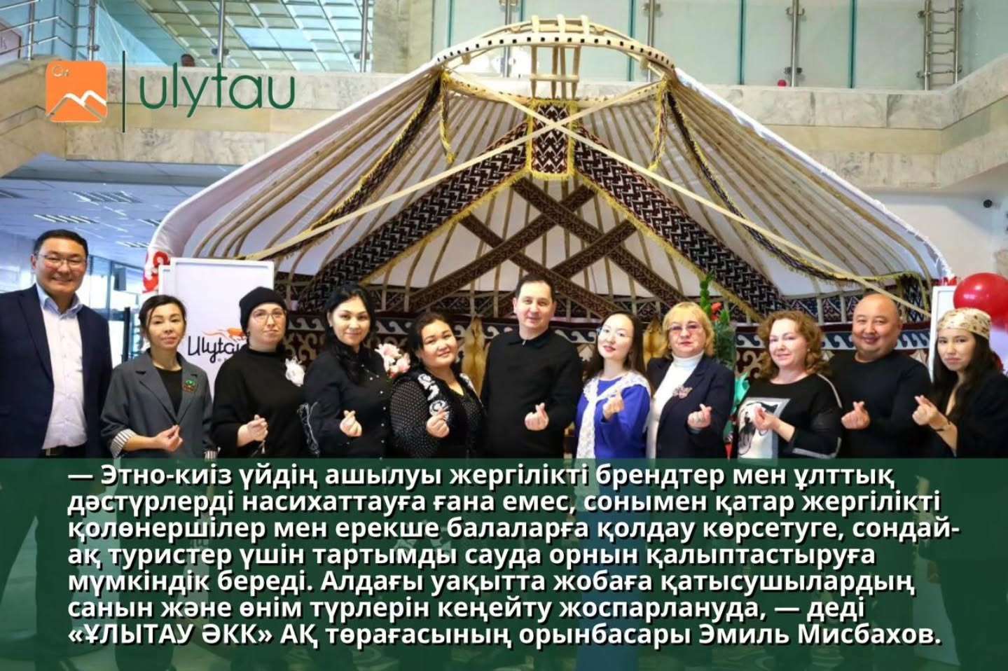 —Открытие этно-юрты позволит не только популяризировать отечественные бренды, культуру и традиции области Ұлытау, но и поддержать местных ремесленников и детей с особенностями развития, а также создать узнаваемую точку продаж в одной из ключевых туристических локаций. Число участников проекта и ассортимент продукции планируется расширить, — говорит заместитель председателя АО СПК «ҰЛЫТАУ» Эмиль Мисбахов.