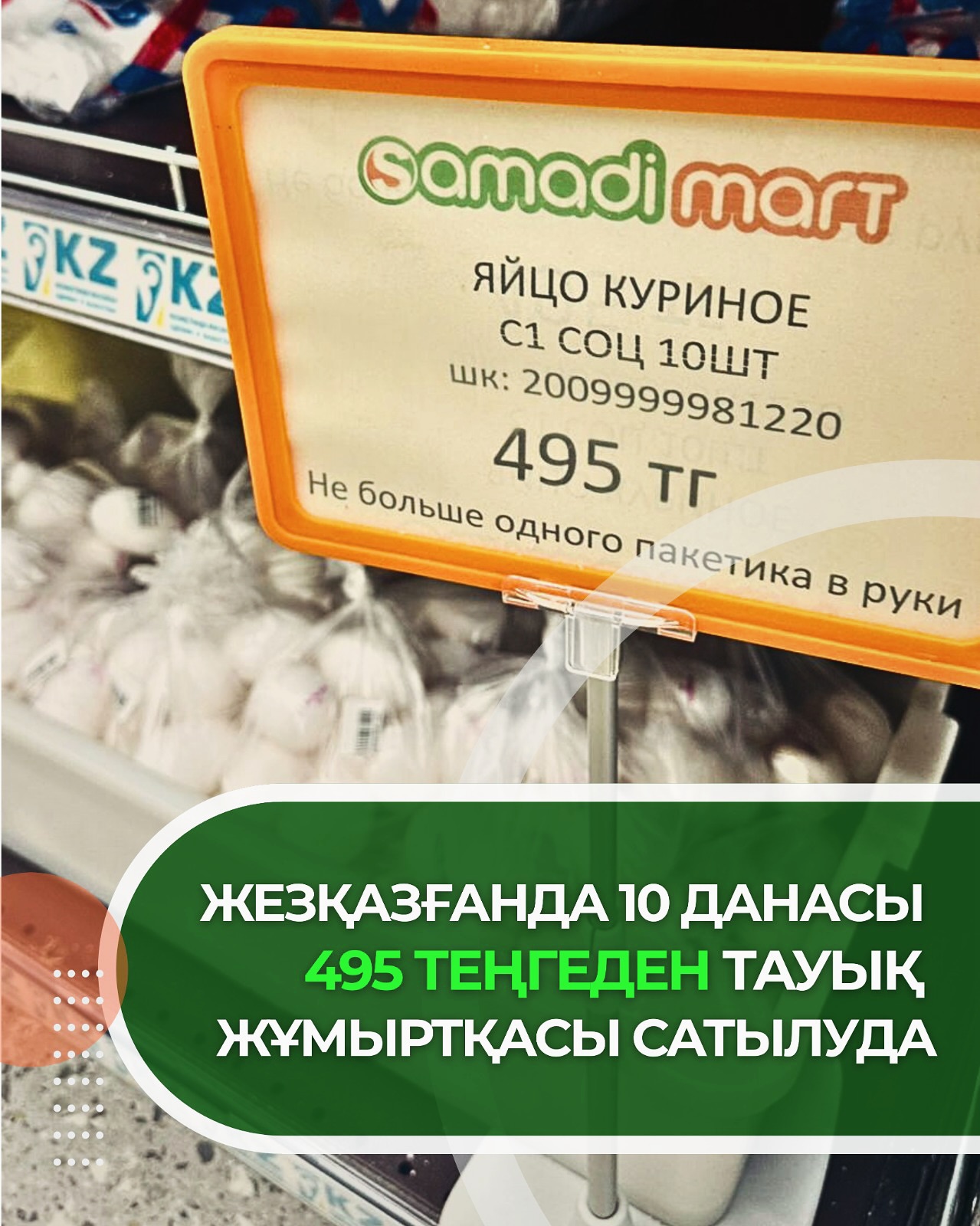 Жұмыртқалардың бағасы — 495 теңге / 10 дана.